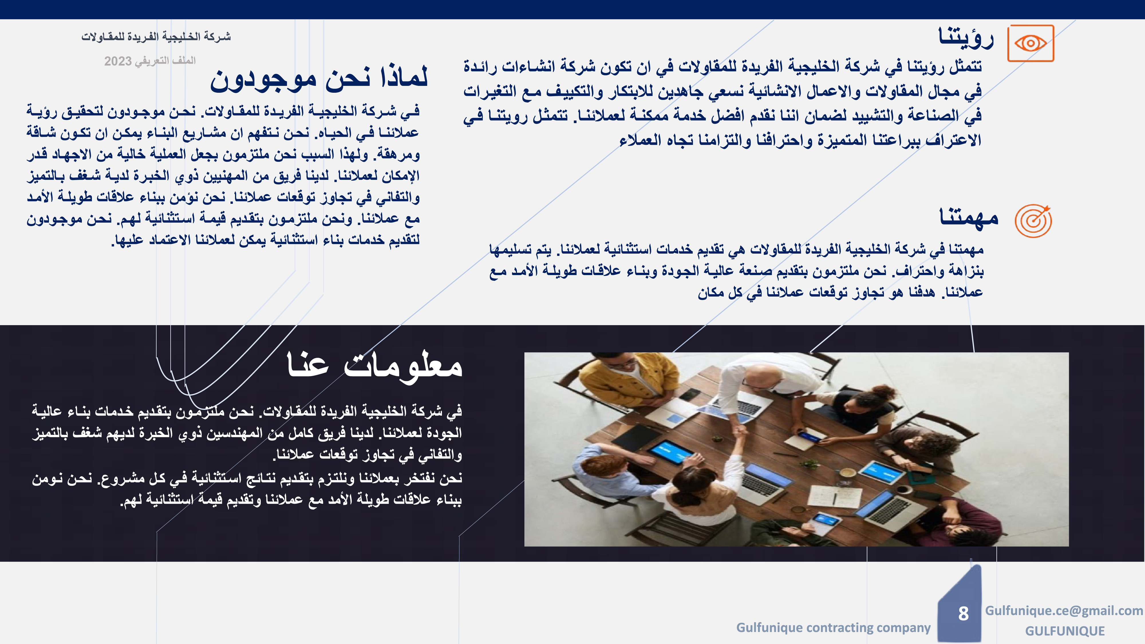 نرحب بك في شركتنا بكل سرور، ونسعد دائمًا بتواصلك معنا للإجابة عن استفساراتك وتقديم أفضل ما لدينا من خدمات.