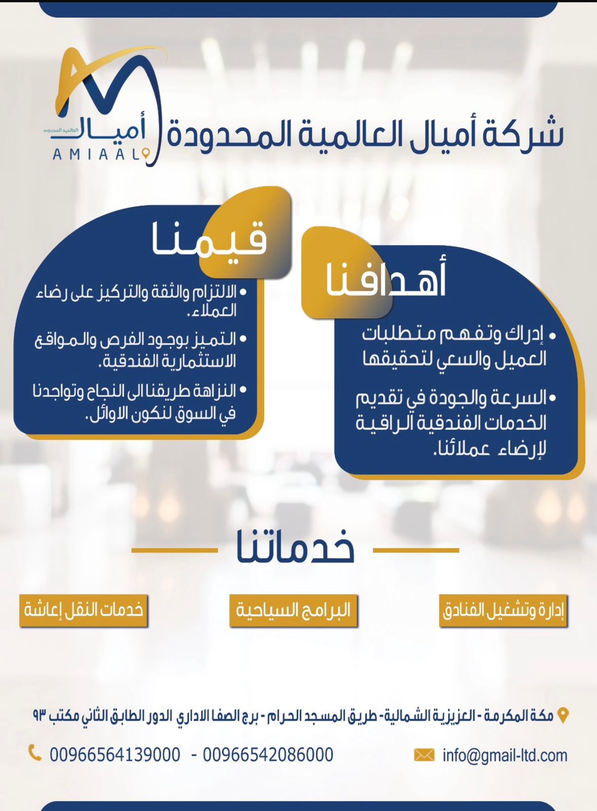 نرحب بك في شركتنا بكل سرور، ونسعد دائمًا بتواصلك معنا للإجابة عن استفساراتك وتقديم أفضل ما لدينا من خدمات.