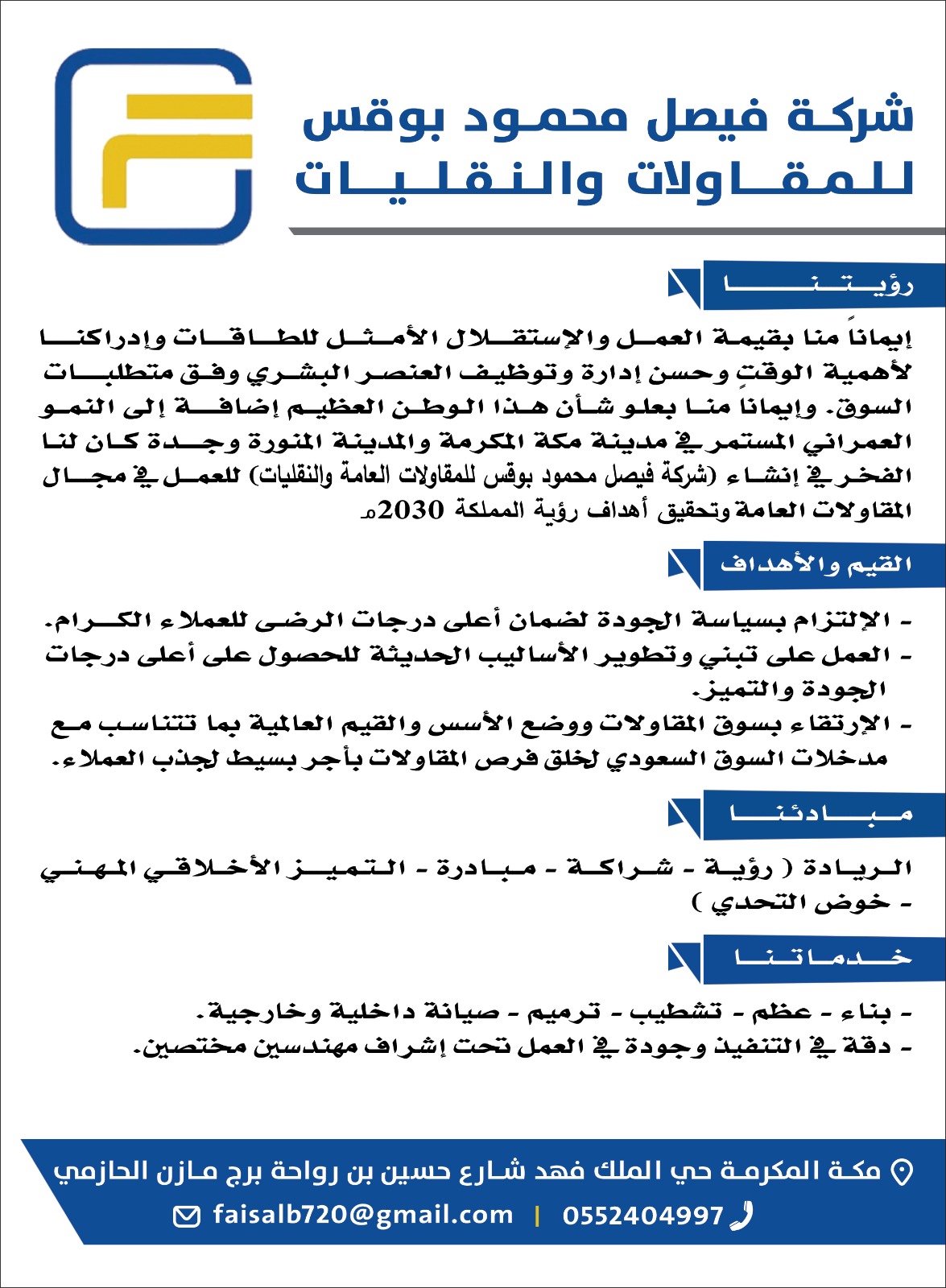 شركة فيصل محمود بوقس للمقاولات والنقليات