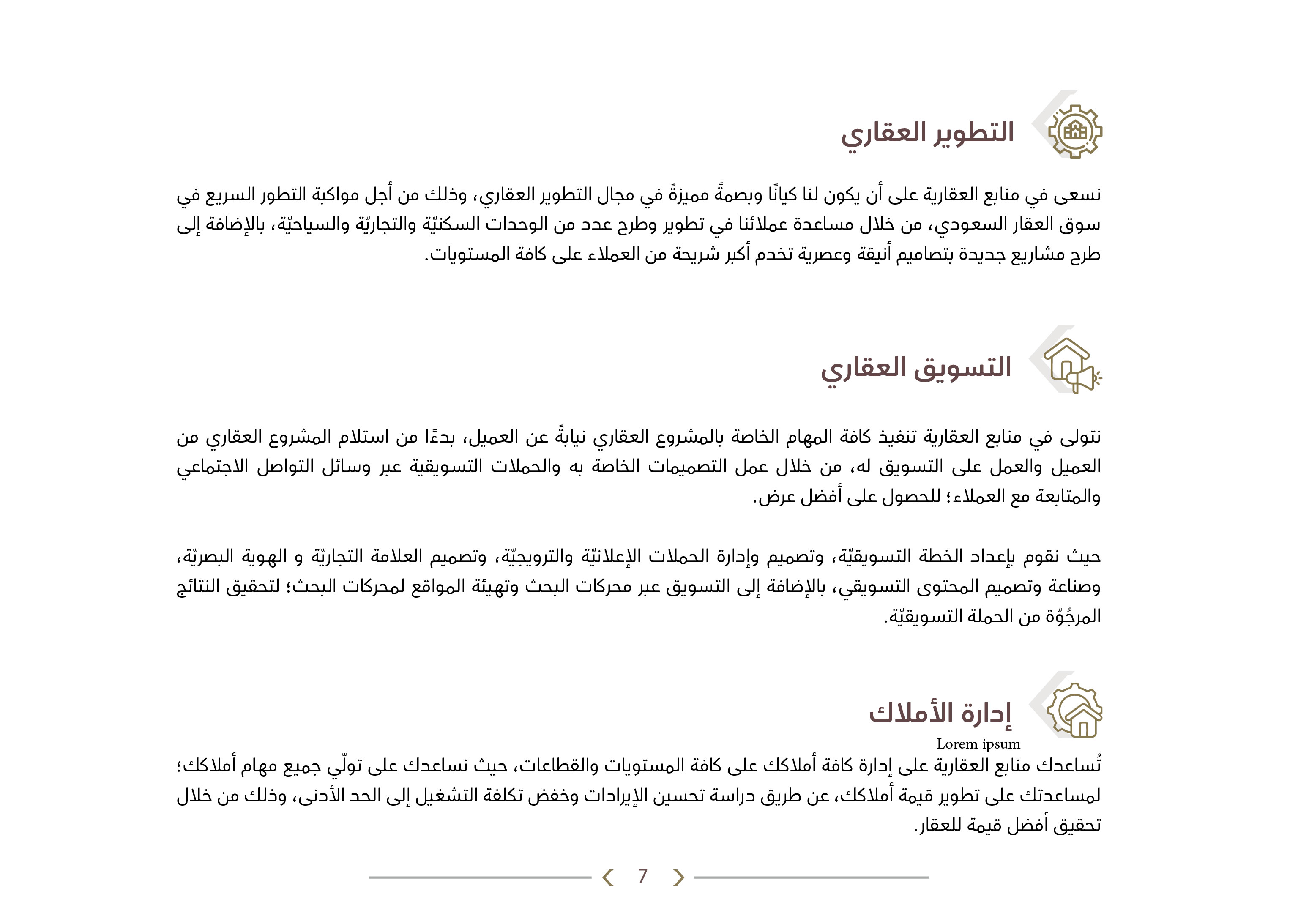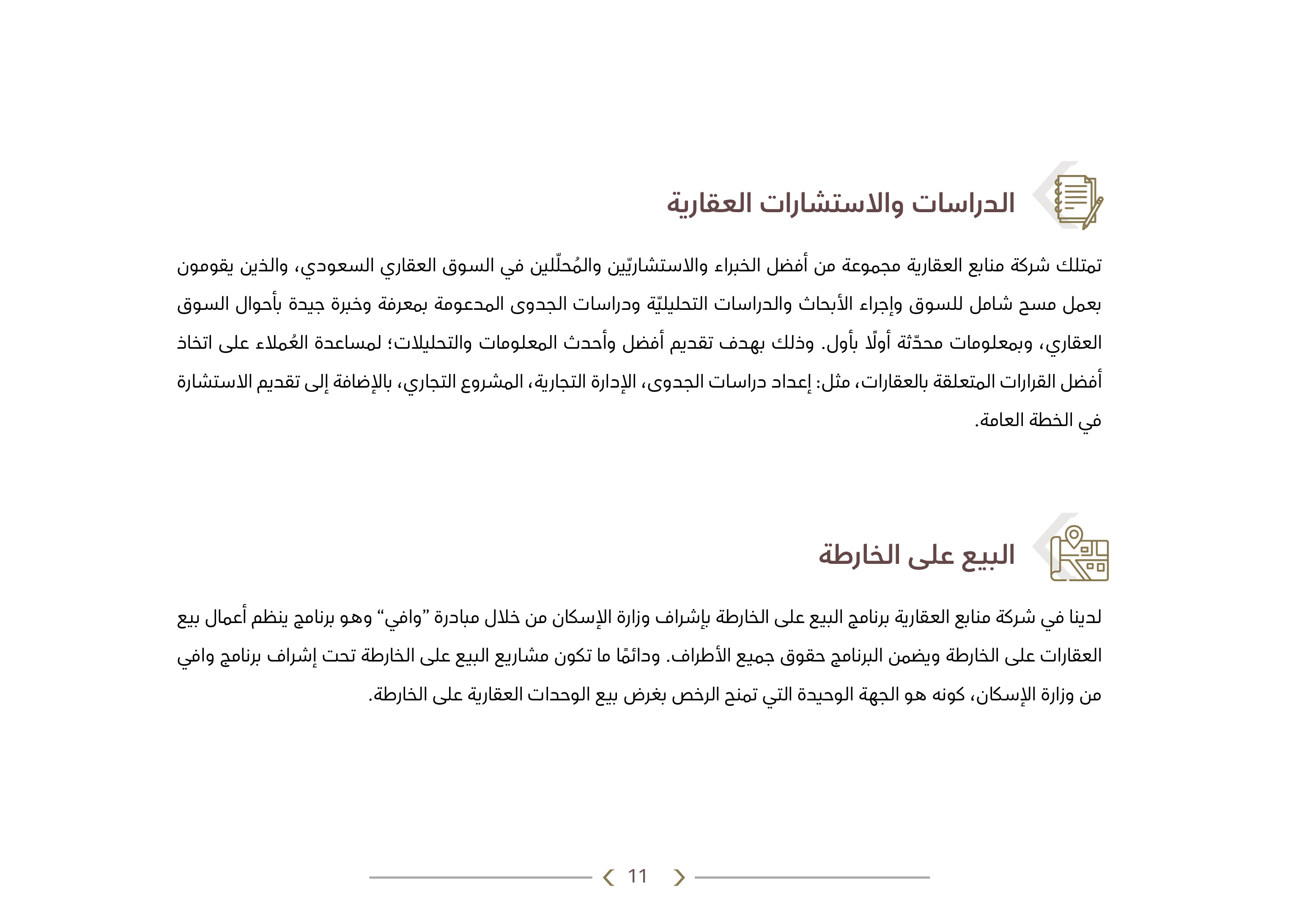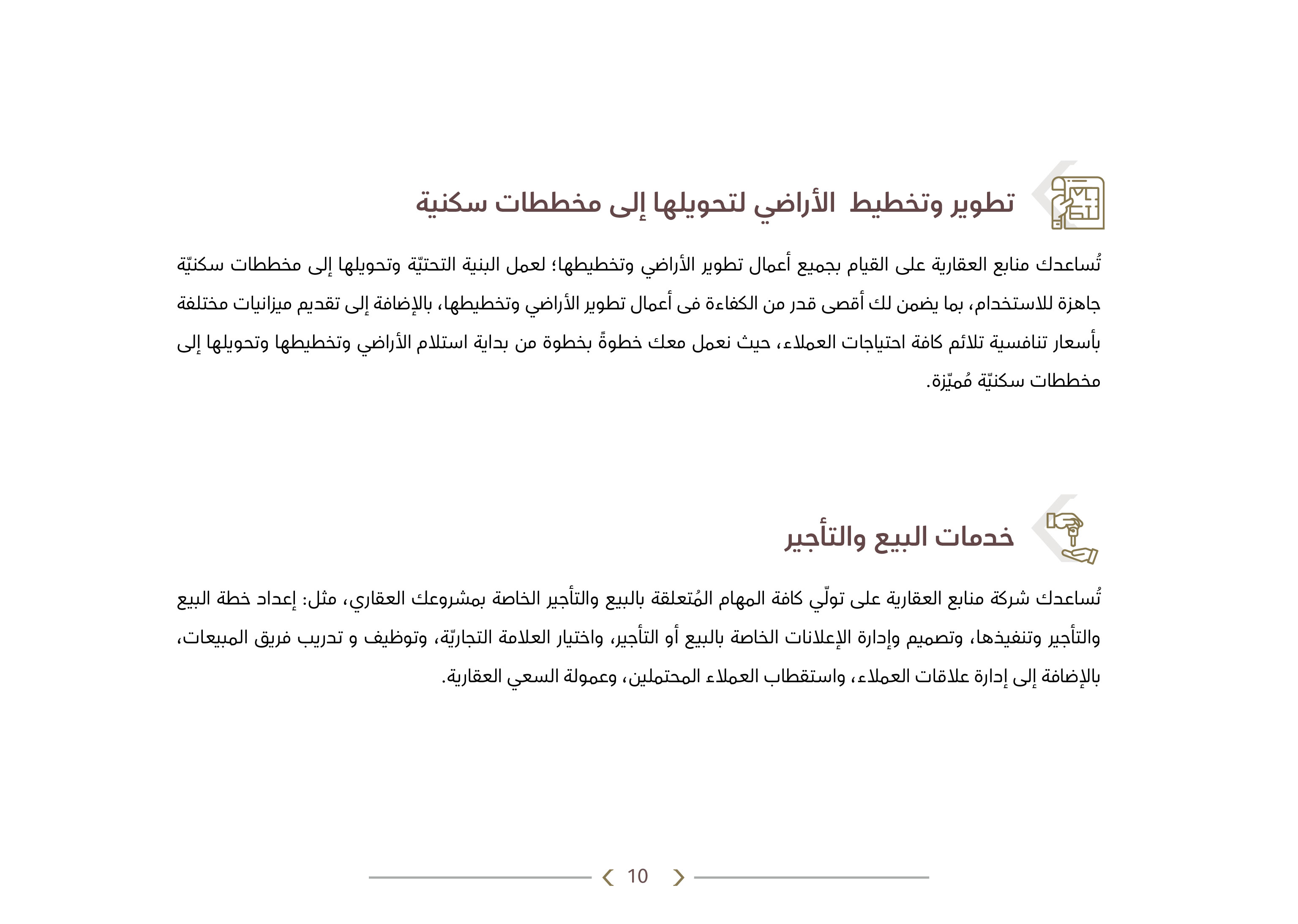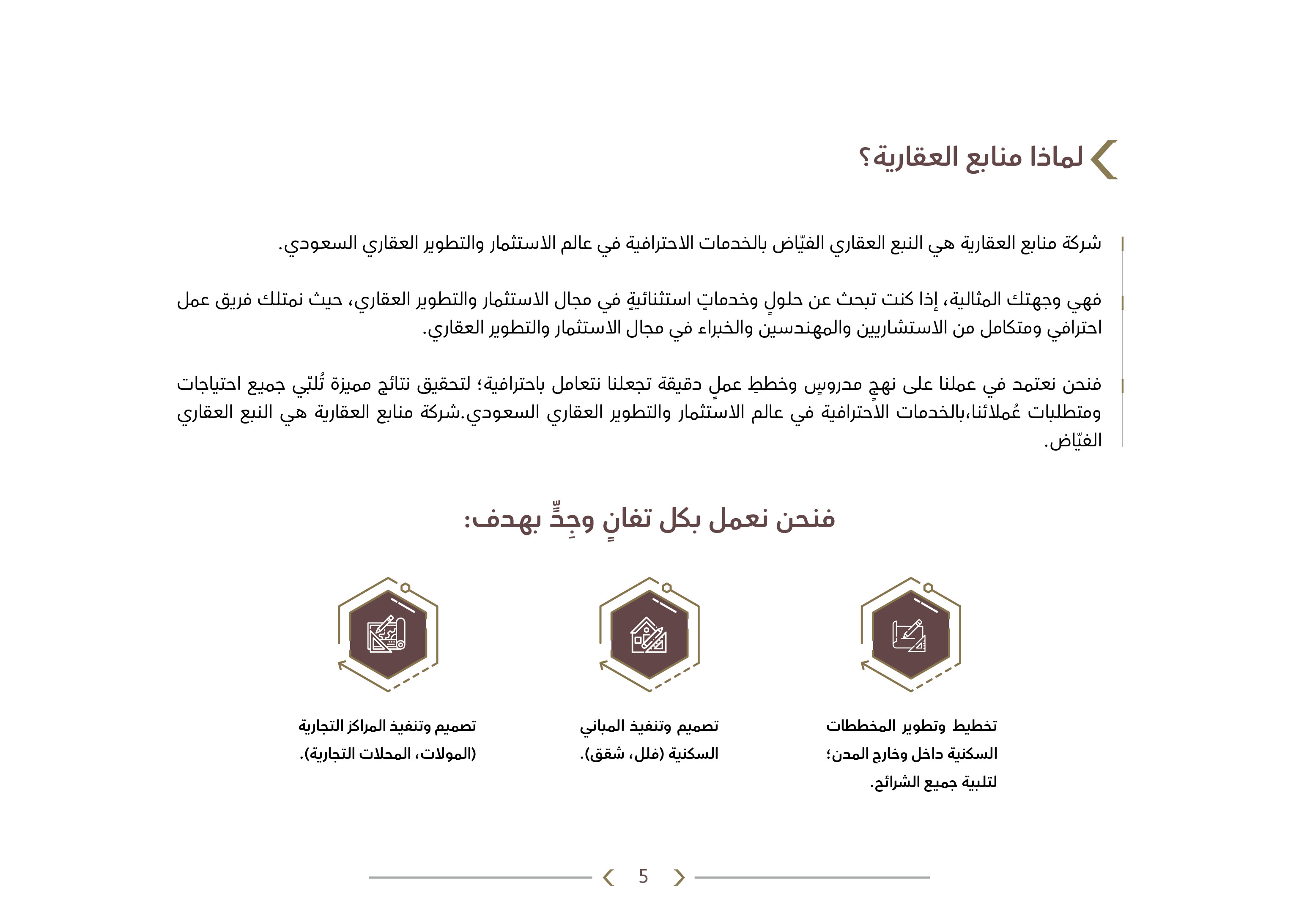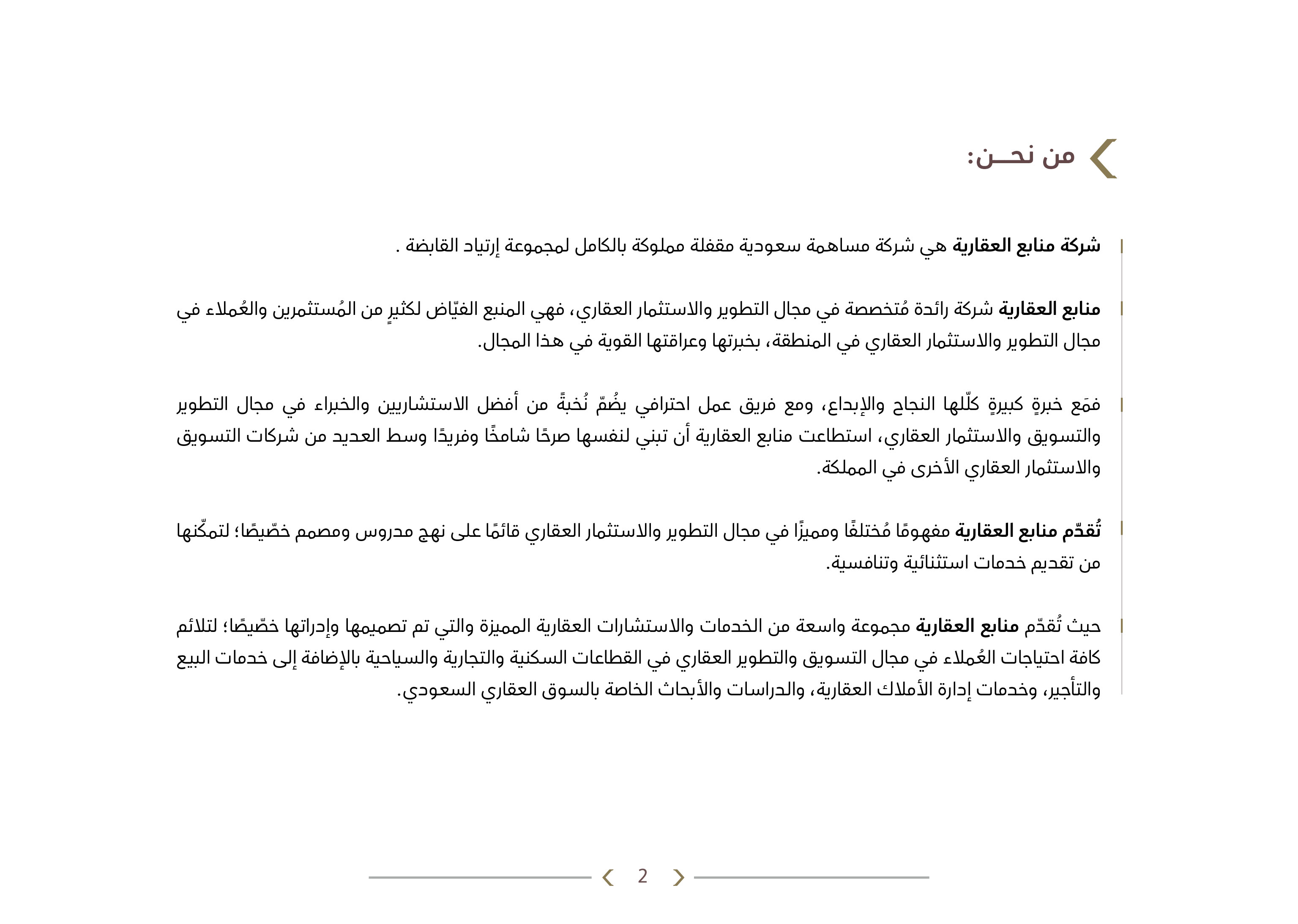 منابع العقارية شركة رائدة متخصصة في مجال التطوير والاستثمار العقاري، فهي المنبع الفياض لكثير من المستثمرين والعملاء في مجال التطوير والاستثمار العقاري في المنطقة، بخبرتها وعراقتها القوية في هذا المجال.