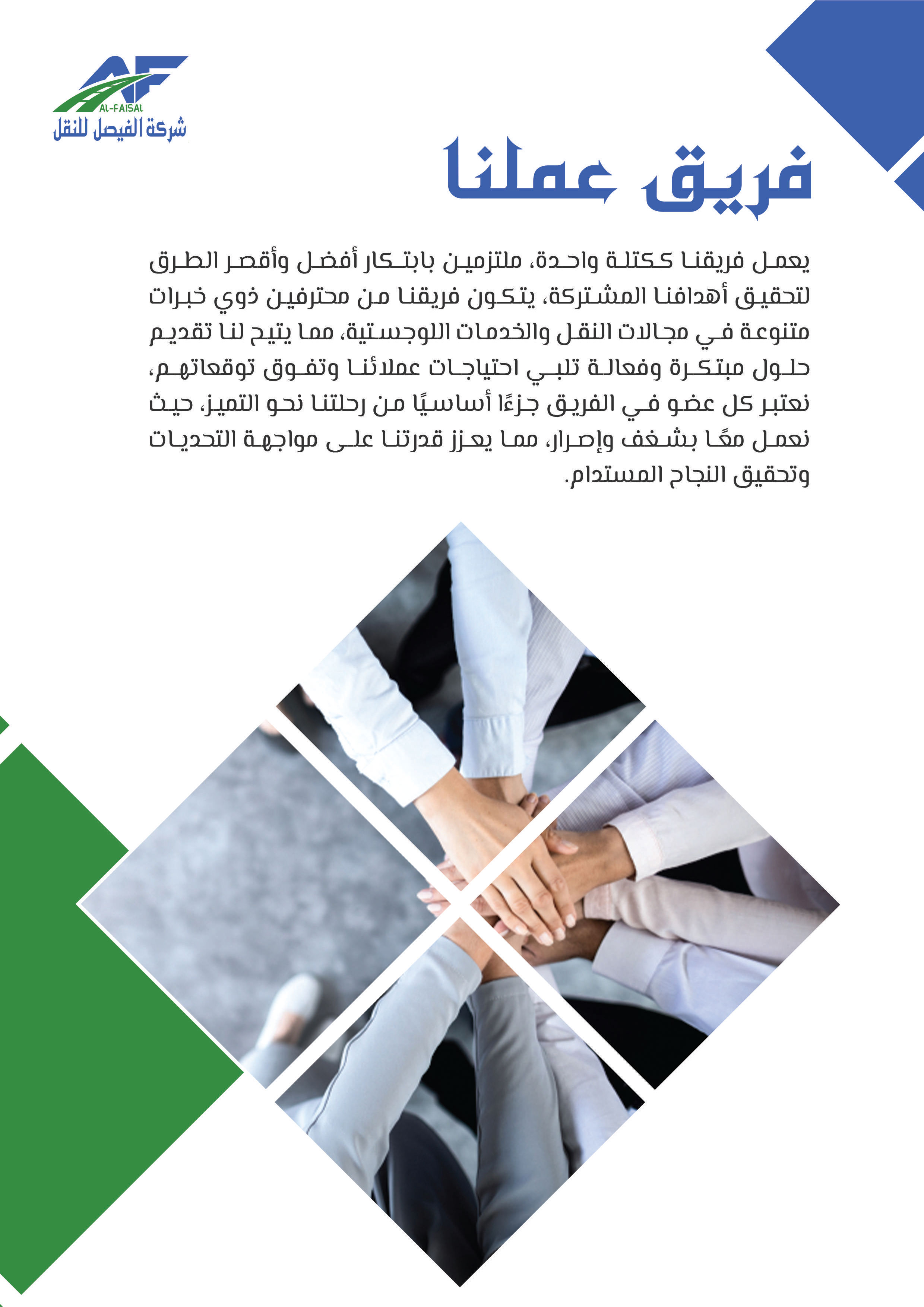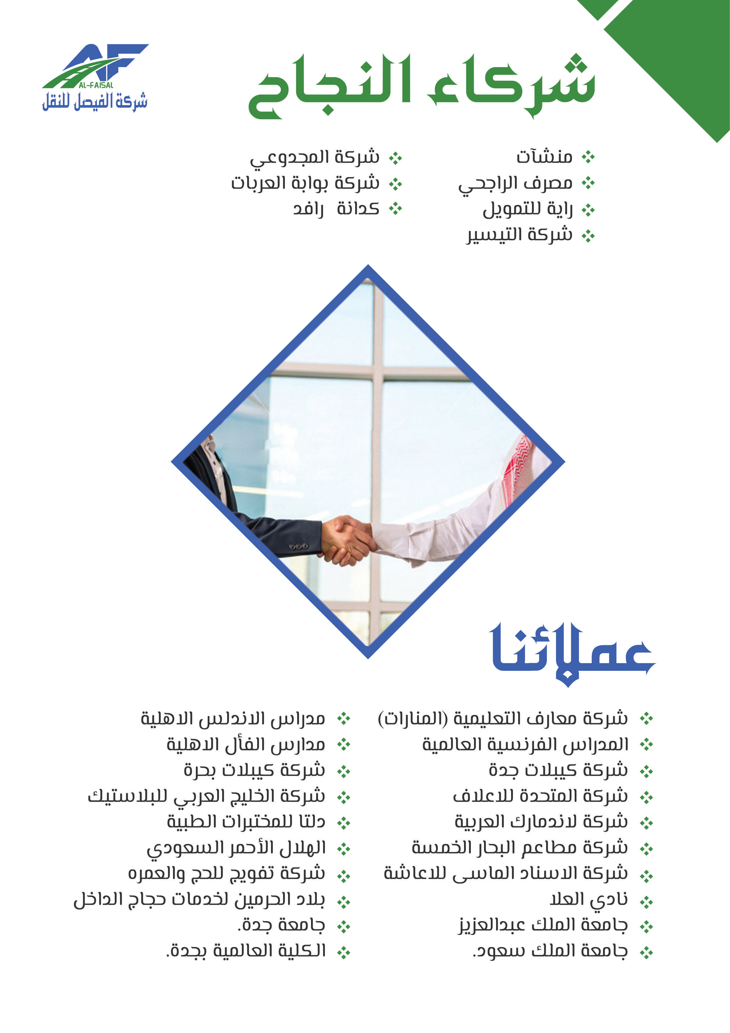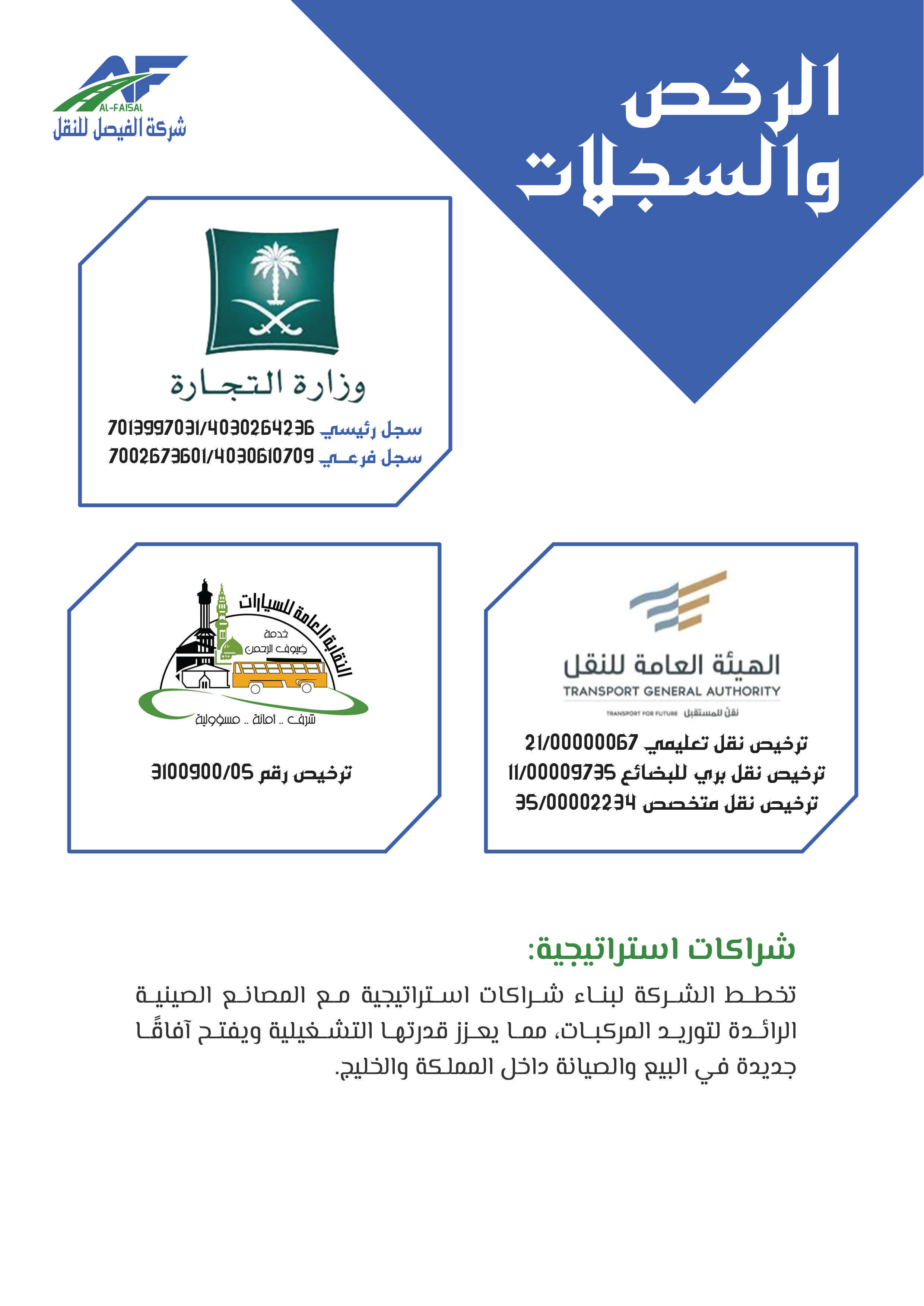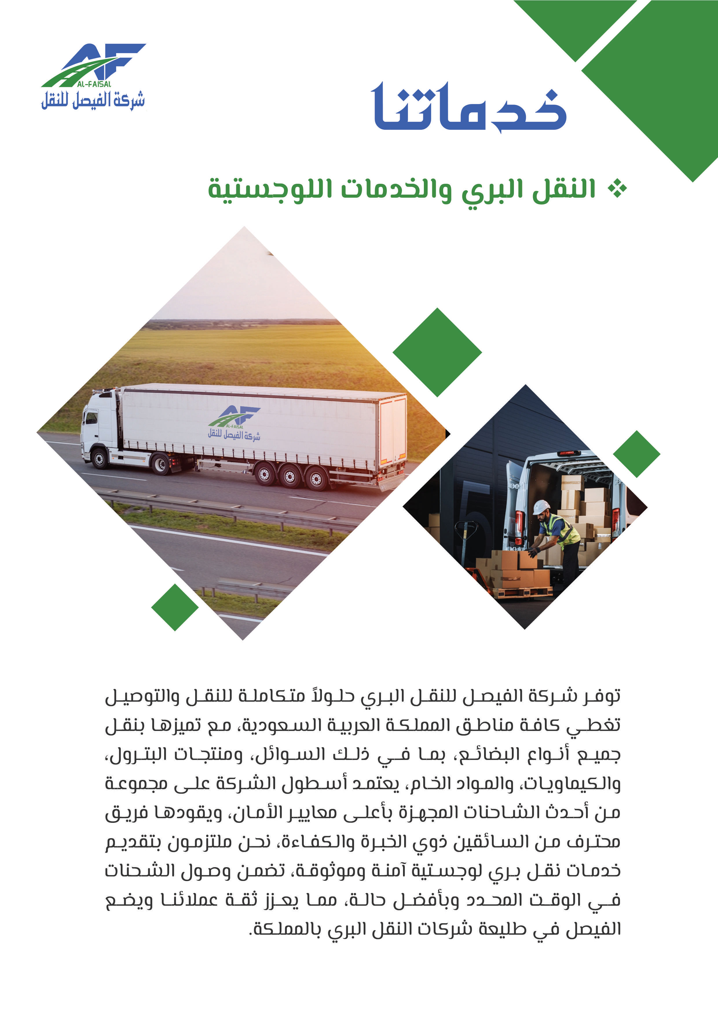 بدأت شركة الفيصل للنقل والخدمات اللوجستية مسيرتها في عام 2011م تحت اسم "مؤسسة فيصل ضيف الله للمقاولات"، مستجيبة للطلب المتزايد على خدمات النقل في عام 2015م أطلق فرع النقل التعليمي لتلبية حاجة النقل المدرسي، ثم سرعان ما تبعه إطلاق فرع النقل البري للبضائع في عام 2018، بهدف تلبية الطلب المتنامي على خدمات النقل البري، ومع إلهام من رؤية المملكة 2030 ودعم الهيئة العامة للمنشآت الصغيرة والمتوسطة "منشآت"، تأسست شركة الفيصل للنقل في عام 2021 لتكون حاضنة لجميع أنشطة النقل المتعددة تحت اسم واحد، ومنذ ذلك الحين توسعت الشركة لتشمل تقديم مختلف الخدمات اللوجستية بأنواعها، مما يرفع مكانتها كشريك موثوق للشركات والأفراد في قطاع النقل، وفي إطار سعيها للريادة أطلقت الشركة مؤخرًا نشاط النقل التخصصي، الذي يشمل نقل المعتمرين والحجاج، والنقل السياحي ونقل منسوبي الشركات والجهات، إضافة إلى خدمات التأجير التشغيلي، وتسعى شركة الفيصل للنقل لتقديم خدمات نقل مبتكرة وموثوقة تساهم في تسهيل التنقل وتلبية احتياجات عملائها المتنوعة بأعلى معايير الجودة والاحترافية.