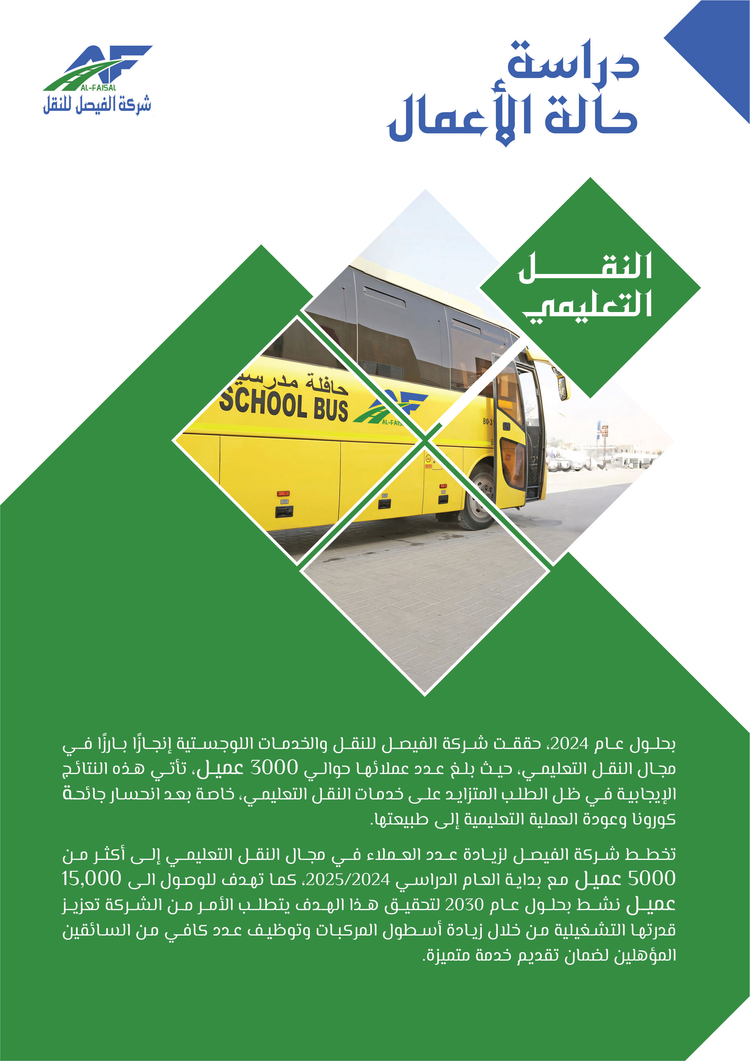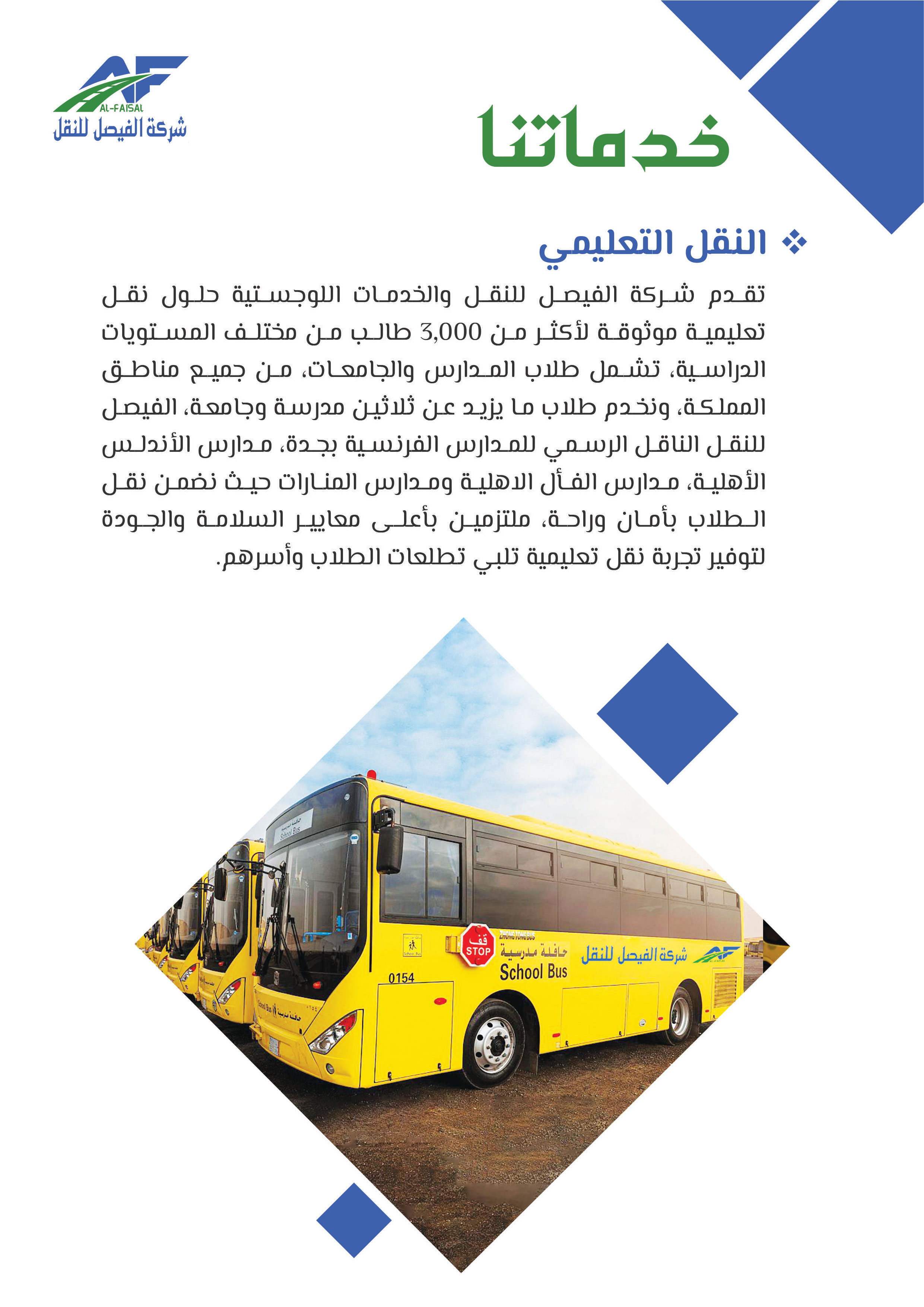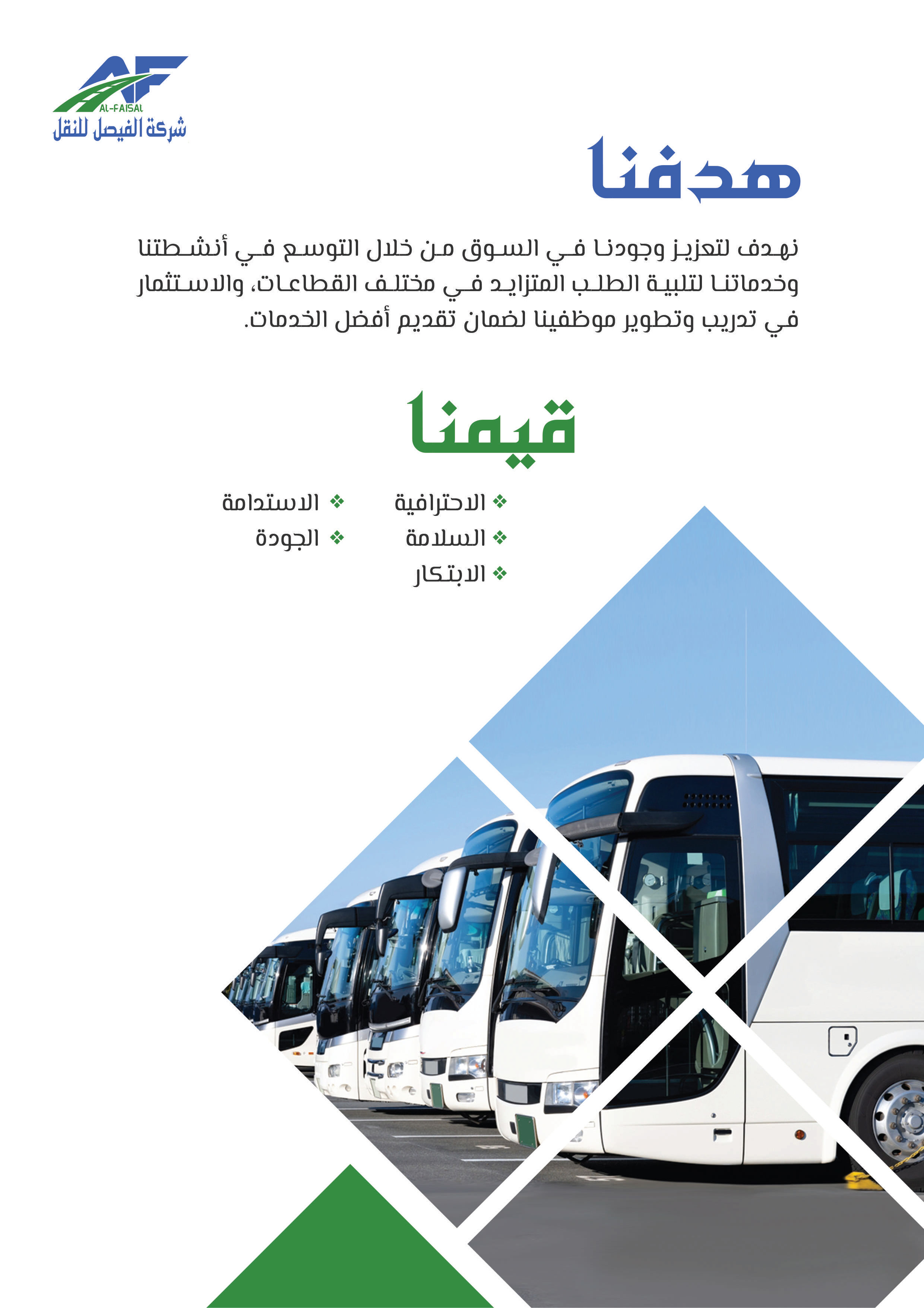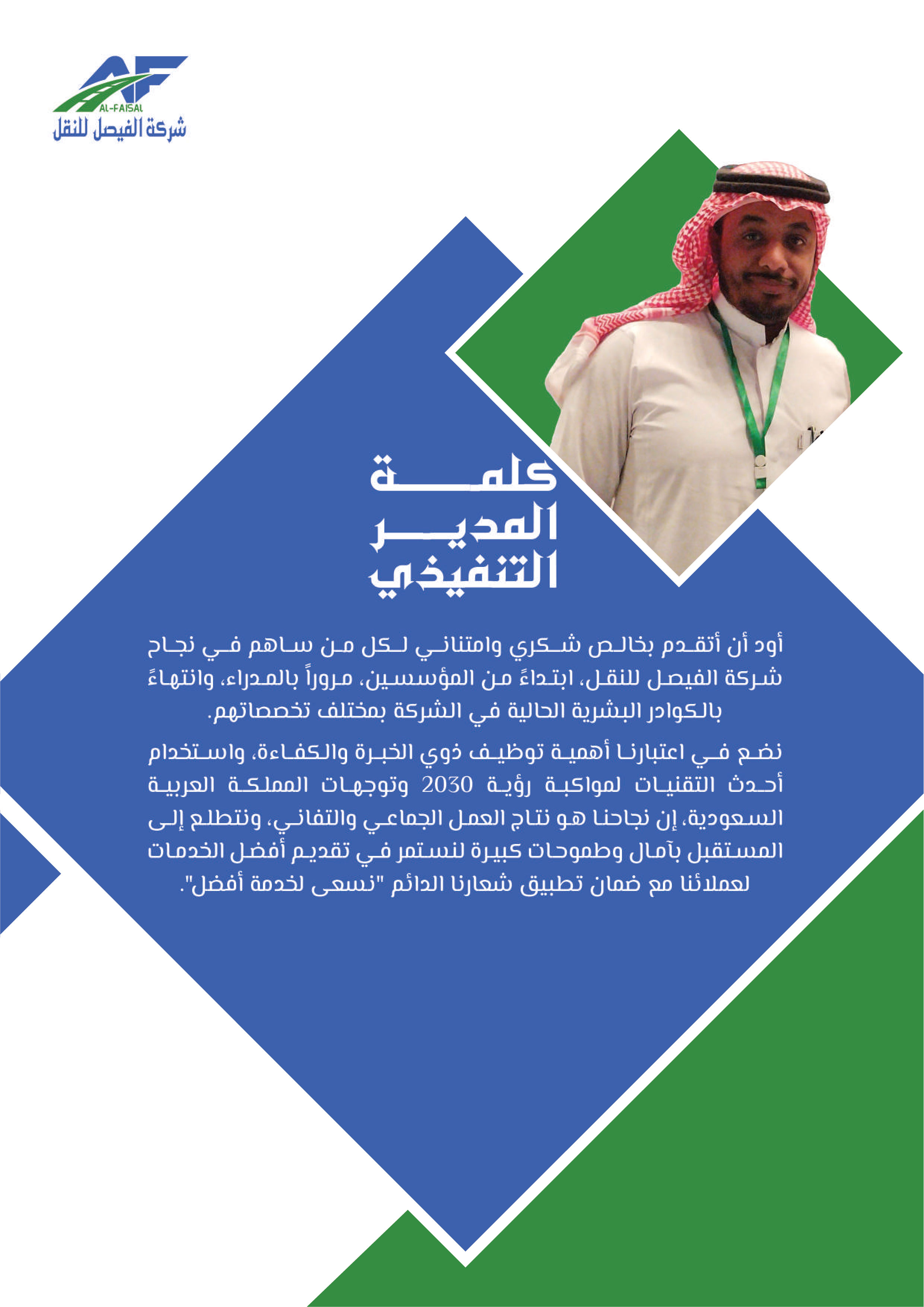 بدأت شركة الفيصل للنقل والخدمات اللوجستية مسيرتها في عام 2011م تحت اسم "مؤسسة فيصل ضيف الله للمقاولات"، مستجيبة للطلب المتزايد على خدمات النقل في عام 2015م أطلق فرع النقل التعليمي لتلبية حاجة النقل المدرسي، ثم سرعان ما تبعه إطلاق فرع النقل البري للبضائع في عام 2018، بهدف تلبية الطلب المتنامي على خدمات النقل البري، ومع إلهام من رؤية المملكة 2030 ودعم الهيئة العامة للمنشآت الصغيرة والمتوسطة "منشآت"، تأسست شركة الفيصل للنقل في عام 2021 لتكون حاضنة لجميع أنشطة النقل المتعددة تحت اسم واحد، ومنذ ذلك الحين توسعت الشركة لتشمل تقديم مختلف الخدمات اللوجستية بأنواعها، مما يرفع مكانتها كشريك موثوق للشركات والأفراد في قطاع النقل، وفي إطار سعيها للريادة أطلقت الشركة مؤخرًا نشاط النقل التخصصي، الذي يشمل نقل المعتمرين والحجاج، والنقل السياحي ونقل منسوبي الشركات والجهات، إضافة إلى خدمات التأجير التشغيلي، وتسعى شركة الفيصل للنقل لتقديم خدمات نقل مبتكرة وموثوقة تساهم في تسهيل التنقل وتلبية احتياجات عملائها المتنوعة بأعلى معايير الجودة والاحترافية.