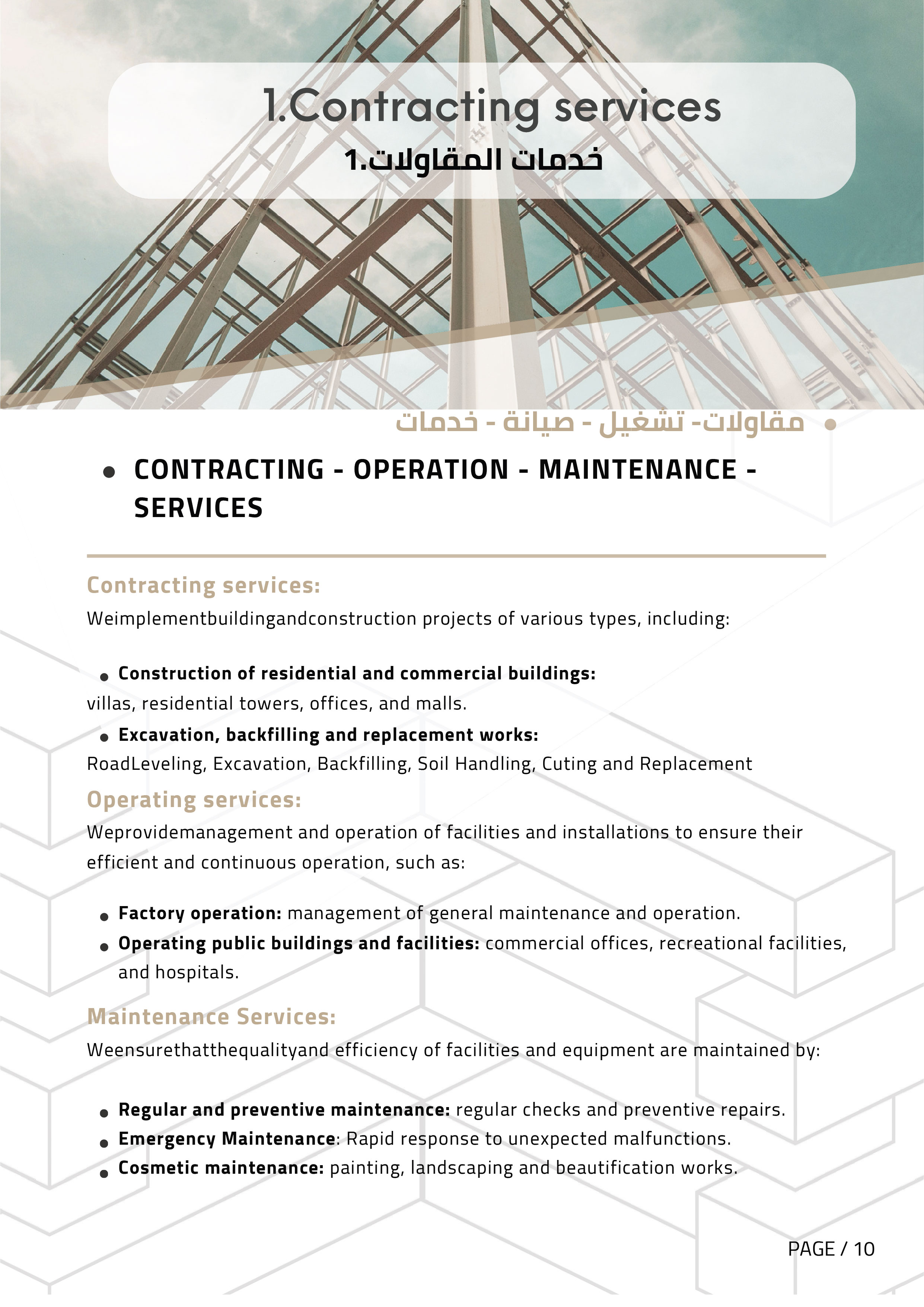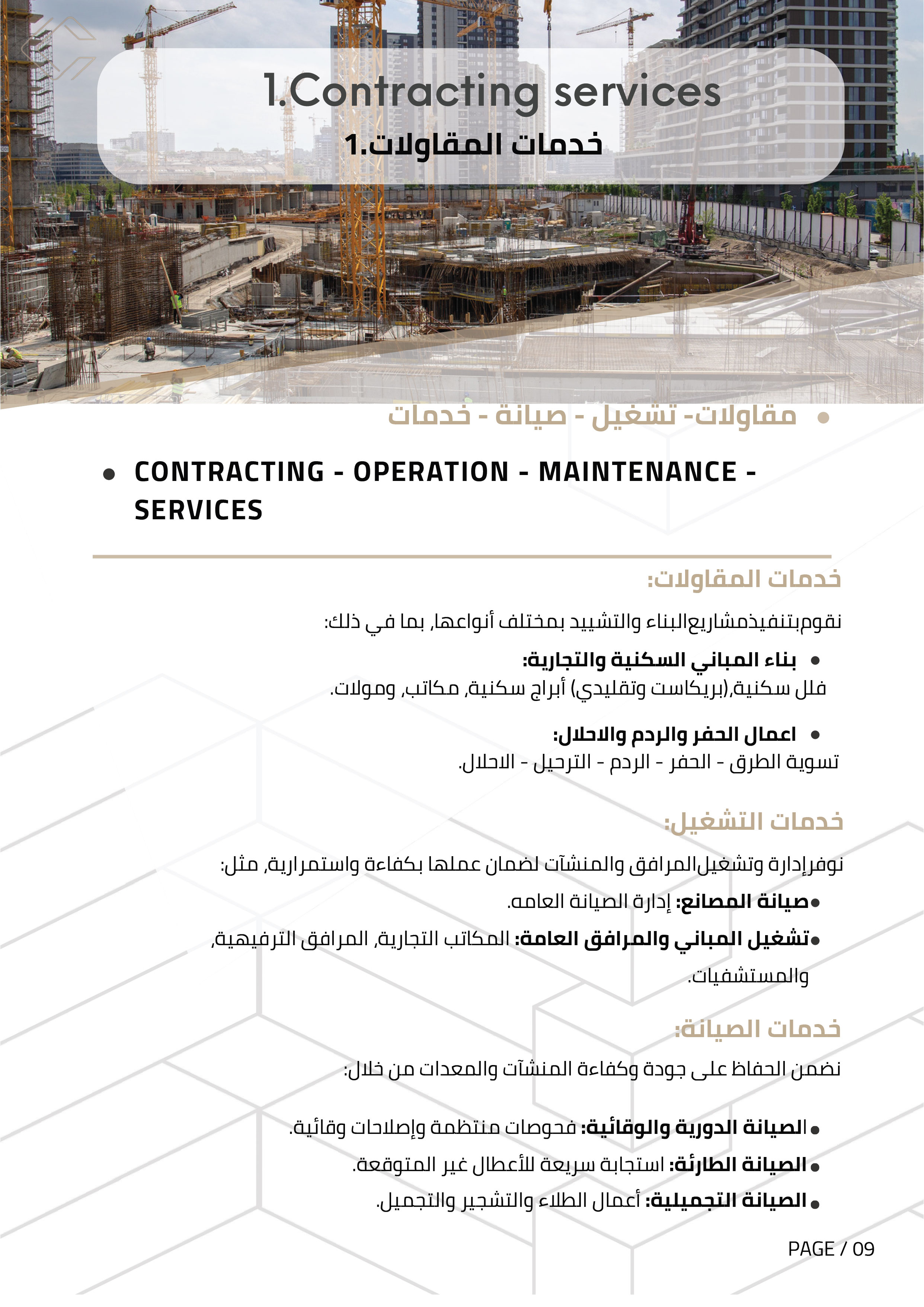 CONSTRUCTION CONCEPT FOR CONTACTING - OPERATION MAINTENANCE - SERVICES LTD