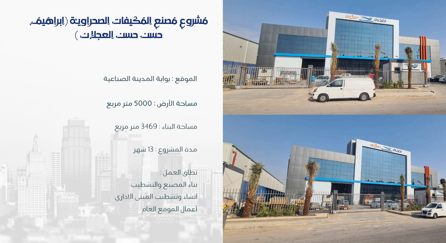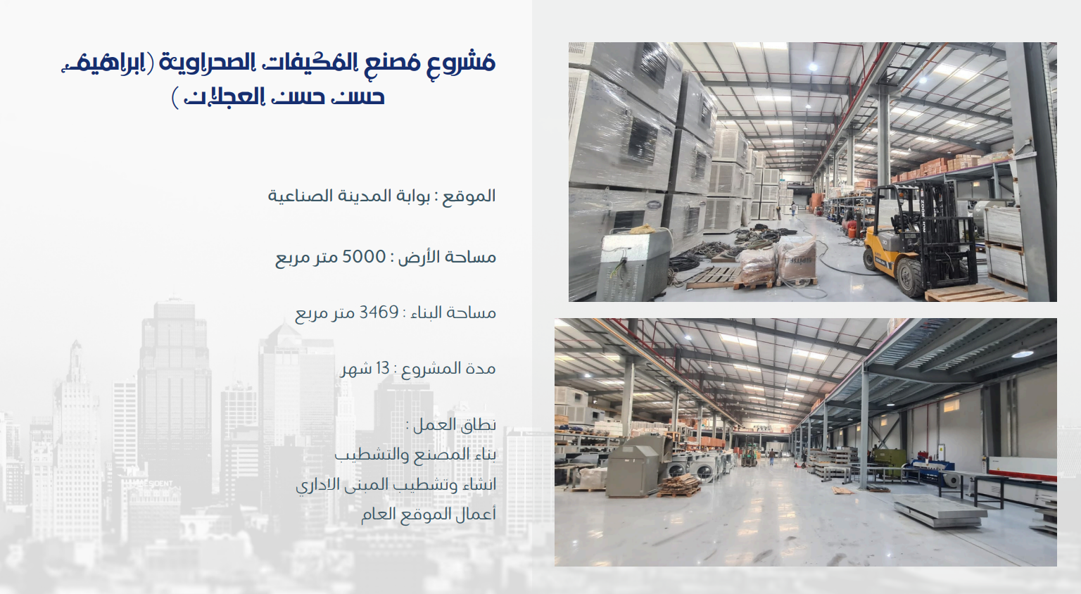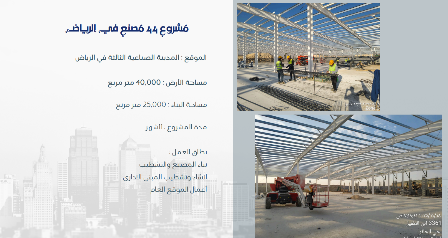 Al-Basel Contracting Company was established to provide leading and comprehensive contracting and construction services within the Kingdom of Saudi Arabia. Thanks to its extensive experience and high efficiency in the field of comprehensive construction, the company specializes in building various types of factories.